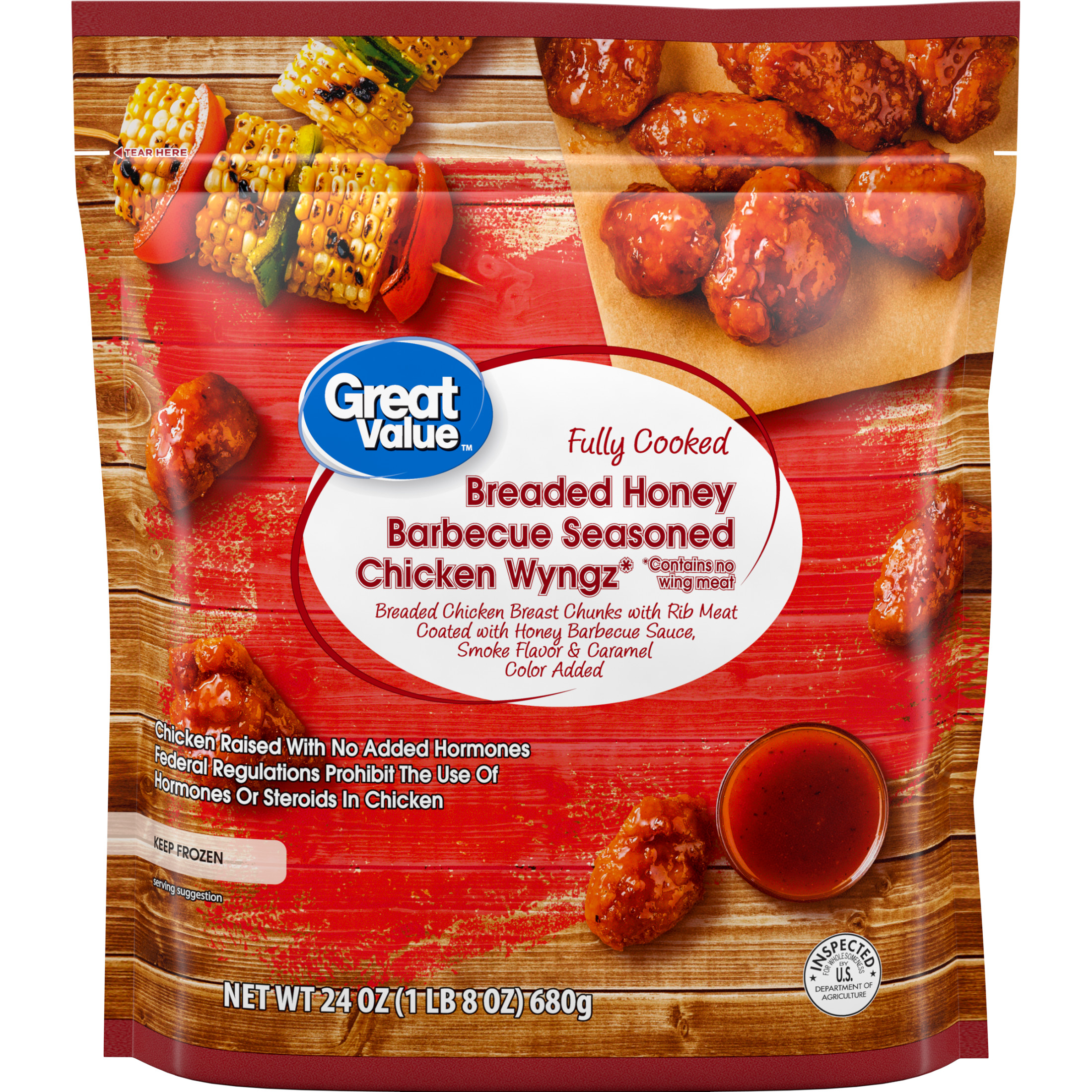Great Value Honey Barbeque Seasoned Boneless Fully Cooked Breaded Chicken Wyngz 24 Oz Walmart Com